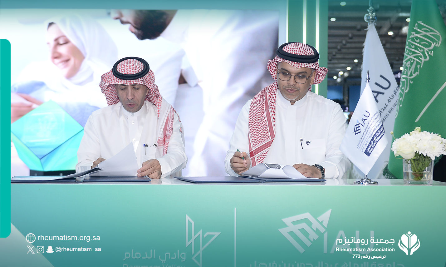 | #توقيع_شراكة_مجتمعية جــامعة الإمــام عبدالرحـمن بن فيـصل ممثــلة فـي ﻣﺴﺘﺸـﻔﻰ اﻟﻤـﻠﻚ ﻓﻬـﺪ اﻟﺠـﺎﻣﻌﻲ ﺑﺎﻟﺨـﺒﺮ و جمعية روماتيزم يوقعان عقد شراكة مجتمعية تهدف لتأمين الأدوﻳﺔ اﻟﺒﻴﻮﻟﻮﺟﻴﺔ ﻟﻠﻤـﺮﺿﻰ اﻟﻤﺤﺘـﺎﺟﻴﻦ المسجـلين بقوائم المستشـفى، واﻟﻤﺴﺎﻫـﻤﺔ ﺑﺘﺄﻣـﻴﻦ ﻛﺮاﺳﻲ ﻣﺘﺤﺮكة لتسهيل حركة وتنقل المراجعين ﻣﻦ اﻟﻤﺮﺿﻰ بين اﻟﻤﺒﺎﻧﻲ اﻟﺪاﺧﻠﻴﺔ واﻟﻌﻴﺎدات اﻟﻄﺒّﻴﺔ والأﻗﺴﺎم اﻷﺧﺮى بالمستشفى. وقّع عن المستشفى اﻟﻤﺪﻳﺮ اﻟﺘﻨﻔﻴﺬي د. ﻋﺒﺪاﻟﻠﻪ ﺑﻦ ﻋﺒﺪاﻟﺴﻼم ﻳﻮﺳﻒ، وعن الجمعية اﻟﻤﺪﻳﺮ اﻟﻌﺎم اﻟﺘﻨﻔﻴﺬي أ. ﻣﺤﻤﺪ اﻟﻄﻔﻴﻠﻲ اﻟﺰﻫﺮاﻧﻲ،